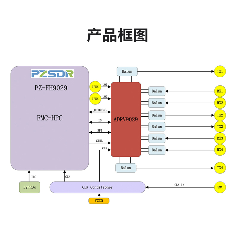 璞致PZSDR 软件无线电 ADRV9029 16bit ADC & 14bit DAC