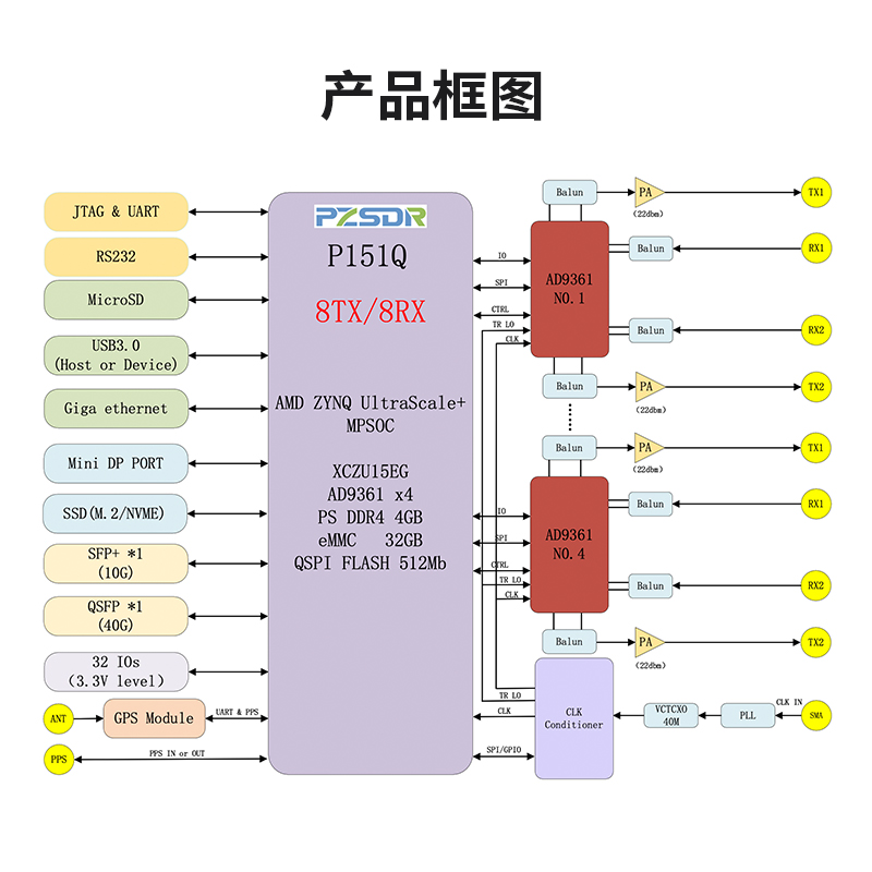 璞致PZSDR 软件无线电 ZU15EG+AD9361*4