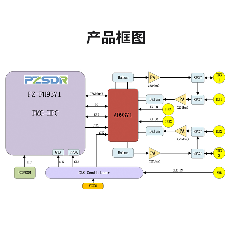 璞致PZSDR 软件无线电 AD9371 16bit ADC & 14bit DAC