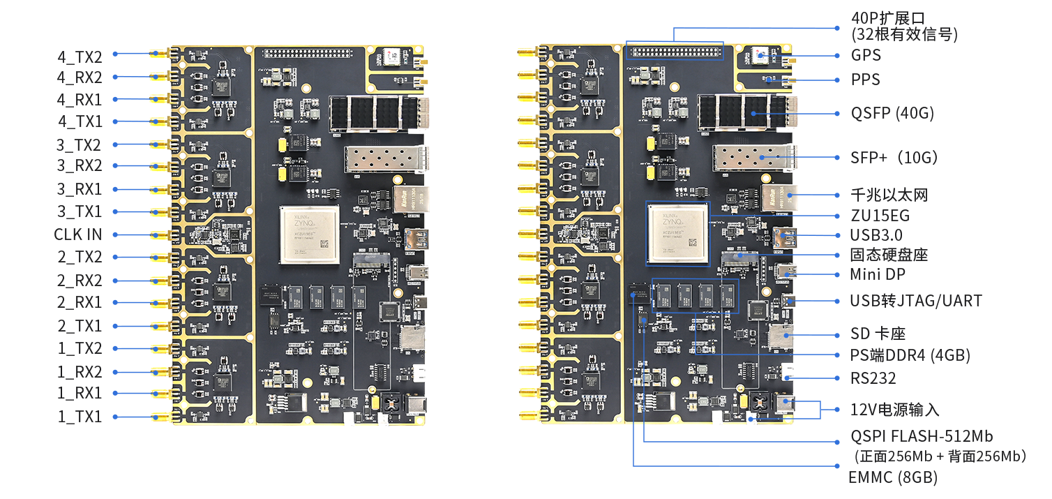 璞致PZSDR 软件无线电 ZU15EG+AD9361*4